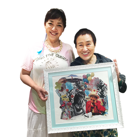 ヤッコさんは、出逢いの中からたくさんの花を咲かせていきます。 どんな日常もヤッコさんにかかると奇跡の1日となります。 わたしもいただいたワンピースは、魔法のワンピースで、それを着ると素敵な出逢いがやってきたりしました。 たくさんの方々がヤッコさんから魔法をかけられてます。 そんなヤッコさんの写真を調べていると、頬杖ついてる写真が多いのが微笑ましかったので、月日を駆け抜けるように1977年と今のヤッコさんが隣同士で並んでいる絵をコラージュさせていただきました。
